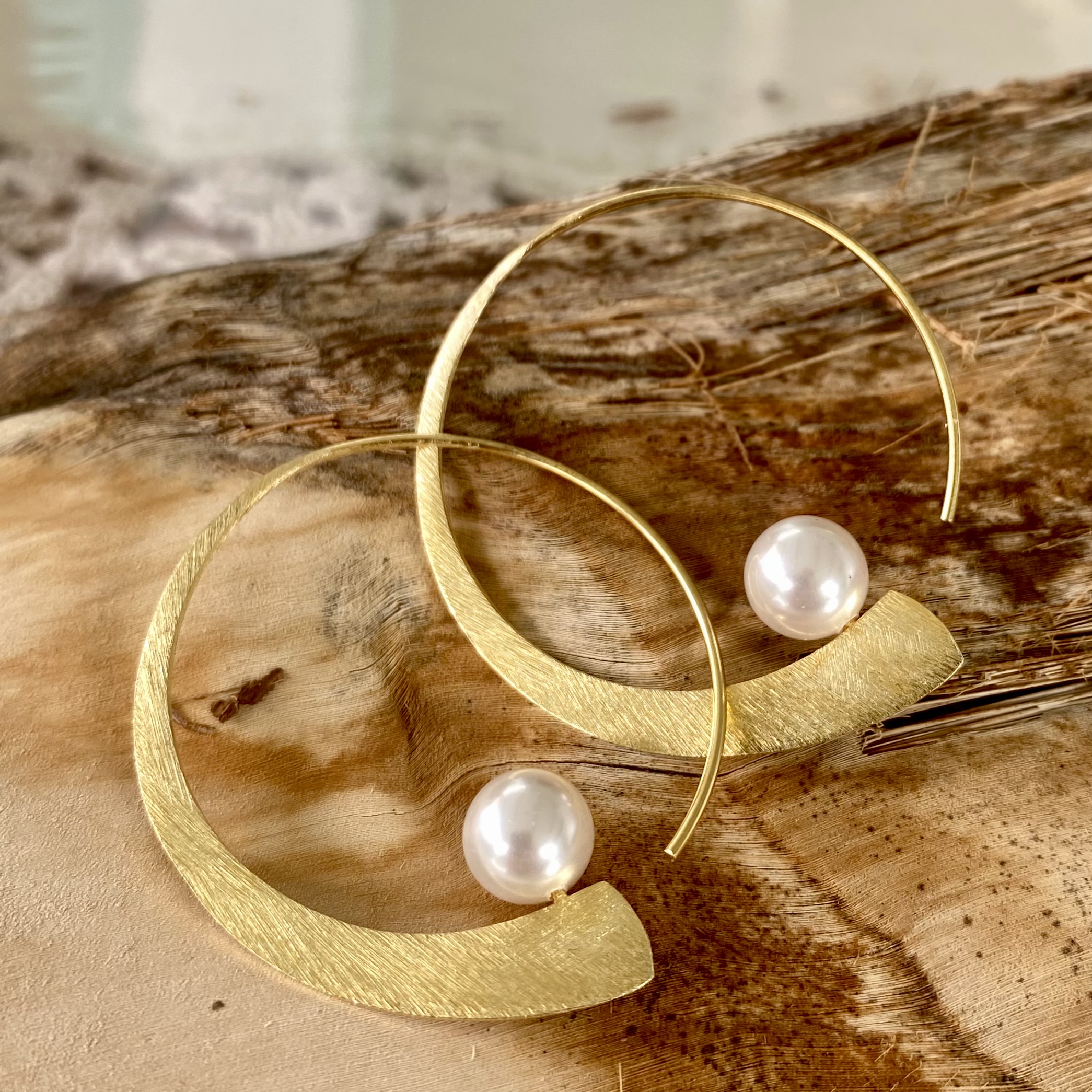 İnci detaylarıyla zarafeti vurgulayan bu tasarım halka küpe,